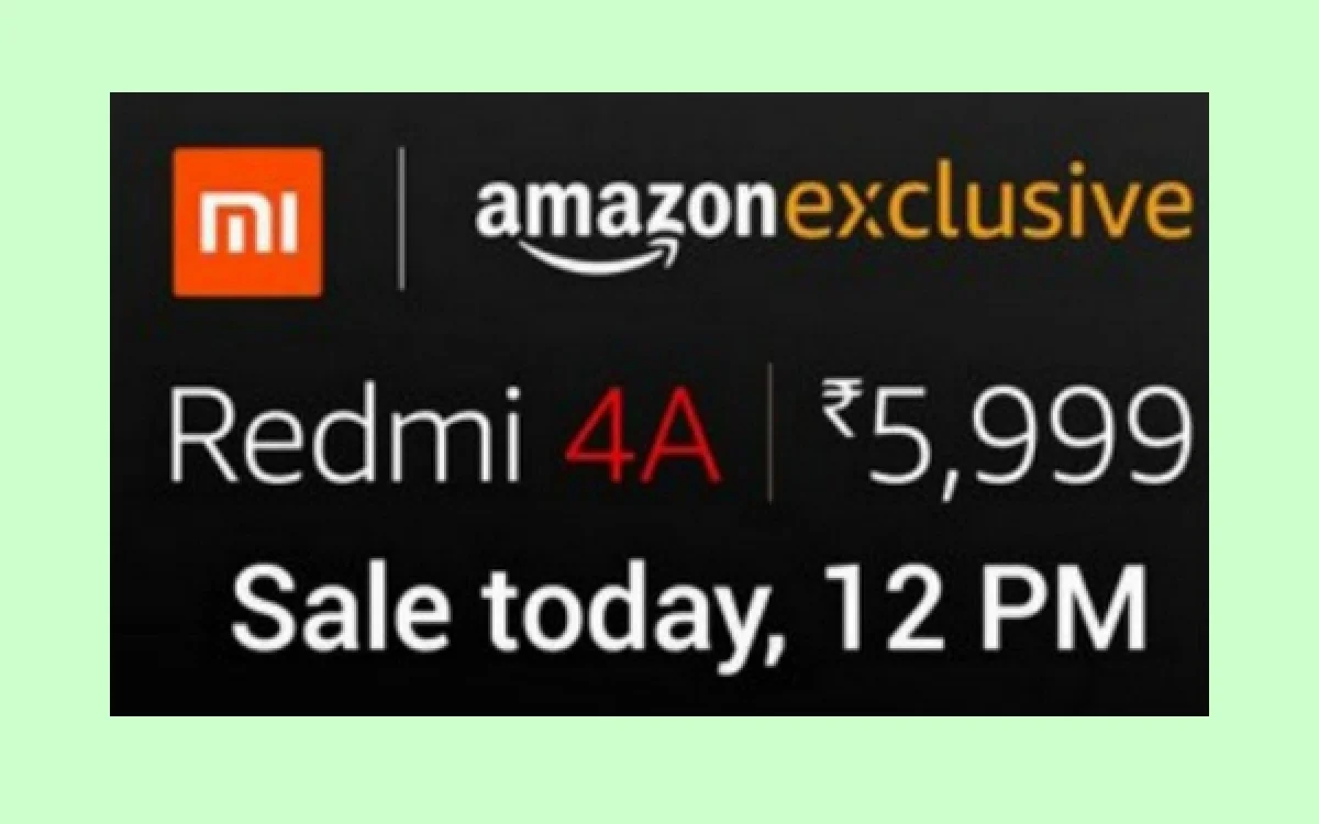 அமேசான் இந்தியா தளத்தில் ரெட்மி 4A இன்று மதியம் 12.00 மணிக்கு பிளாஷ் விற்பனைக்கு வருகிறது.