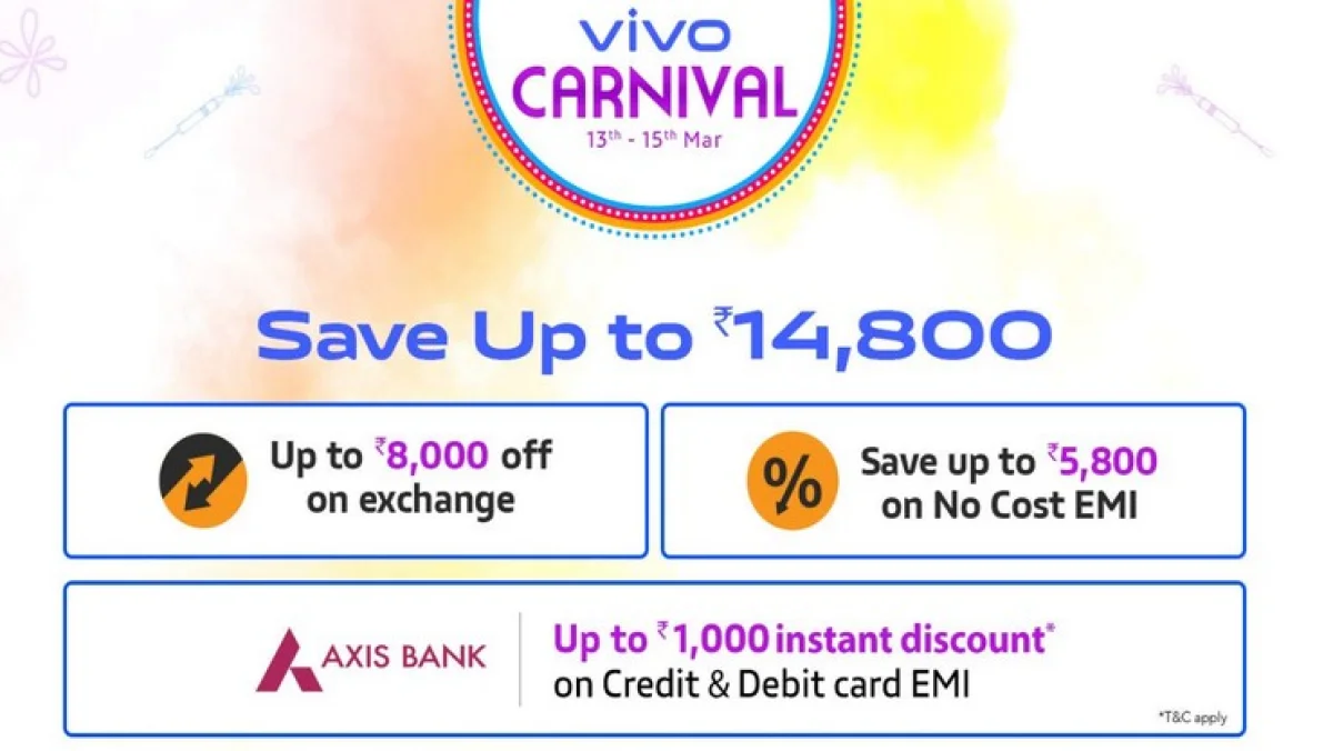 ஆம், எக்ஸ்சேஞ்ச் முறையில் விவோ ஸ்மார்ட்போனை வாங்குபவர்களுக்கு ரூ.8,000 வரை விலை குரையும். அதேபோல், ஆக்ஸிஸ் வங்கியின் டெபிட் கார்டு / கிரேடிட் கார்டு மூலம் வாங்குபவர்களுக்கு ரூ.1000 உடனடி தள்ளுபடி கிடைக்கும். அதோடு, வட்டியில்லா கடன் மூலம் ரூ.5,800 சேமிப்பு.