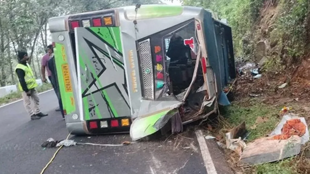கேரளாவில் சாமி தரிசனம் முடித்துவிட்டு, ஆந்திர பக்தர்கள் சென்று கொண்டிருந்த பேருந்து ஒன்று கவிழ்ந்து விபத்து ஏற்பட்டுள்ளது.
