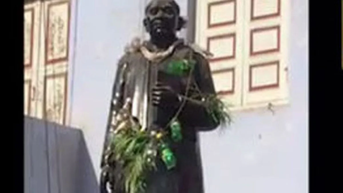 இந்த நிலையில், நேற்றிரவு இந்த சிலைக்கு காலி குளிர்பான பாட்டில்கள் மற்றும் புல் ஆகியவற்றால் ஆன மாலையை சில மர்மநபர்கள் அணிவித்து அவமரியாதை செய்துள்ளனர். காலை எழுந்தவுடன் இந்த அவமரியாதையை கண்ட கிராமவாசிகள் அதிர்ச்சி அடைந்து அந்த மாலையை அகற்றியதுடன் அருகாமையில் உள்ள காவல் நிலையத்தில் புகார் அளித்தனர்.