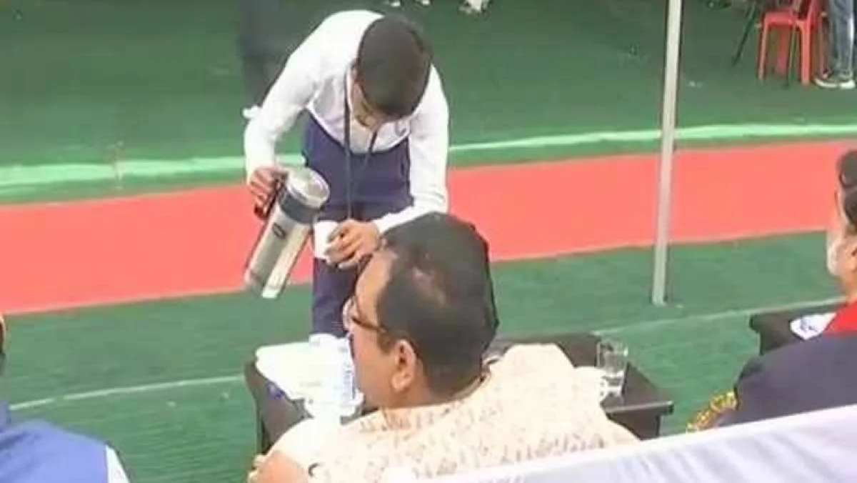 மத்தியப்பிரதேச மாநிலத்தில் கல்வி அமைச்சர் தலைமையில் நடைபெற்ற நிகழ்ச்சியில் பள்ளி மாணவர்கள் டீ, ஸ்னாக்ஸ் பரிமாறியது பெரும் பரபரப்பை ஏற்படுத்தியது.