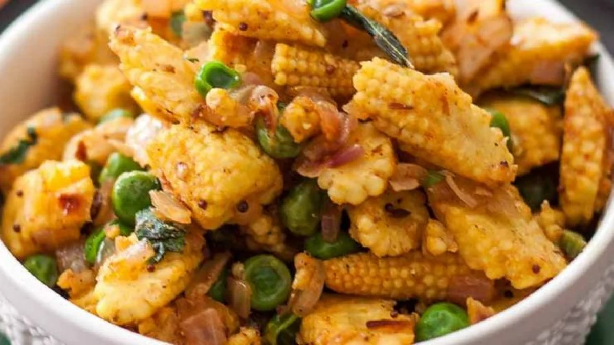 அடுப்பில் பாத்திரத்தை வைத்து அதில் எண்ணெய் ஊற்றி சூடான பின்னர் அதில் பட்டை, கிராம்பு, ஏலக்காய் சேர்த்து பின்னர் வெங்காயம் சேர்த்து பொன்நிறமாக வரும் வரை வதக்கவும். இஞ்சி, பூண்டு விழுது சேர்த்து வதக்கவும். தக்காளி சேர்த்து நன்றாக வதக்கவும், இத்துடன் பேபி கார்ன் சேர்க்கவும்.