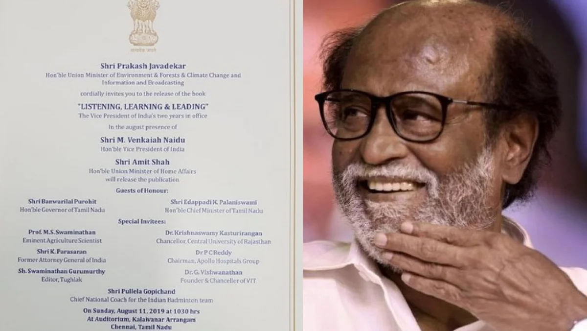 இந்நிலையில், சமூக வலைதளங்களில் இந்த விழாவிற்கான அழைப்பிதழில் நடிகர் ரஜினி காந்த் பெயர் இடம் பெறவில்லை. சிறப்பு விருந்தினர்கள் பெயர் பட்டியலில் வேளாண்மை விஞ்ஞானி எம்எஸ் சுவாமிநாதன், ராஜஸ்தான் மத்திய பல்கலைக்கழக துணை வேந்தர் கிருஷ்ணசாமி கஸ்தூரிரங்கன், முன்னாள் அட்டர்னி ஜெனரல் கே. பராசரன், அப்போலோ மருத்துவமனை சேர்மன் டாக்டர். பி.சி. ரெட்டி, துக்ளக் ஆசிரியர் சுவாமி நாதன் குருமூர்த்தி, விஐடி பல்கலைக்கழக நிறுவனர் ஜி. விஸ்வநாதன் ஆகியோர் பெயர் மட்டுமே உள்ளது.