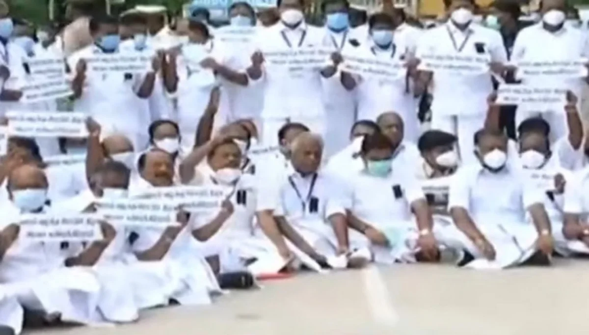 இந்நிலையில் அதிமுகவுடன் மற்ற எதிர்கட்சிகளான பாமக, பாஜகவும் சட்டப்பேரவையில் வெளியேறியுள்ளனர். பிறகு வளாகத்தில் அமர்ந்து தர்ணாவில் ஈடுபட்டுள்ளனர். அதில் “பொய் வழக்கு போடாதே மக்களை வஞ்சிக்காதே” என கோஷங்களை எழுப்பியுள்ளனர்.
