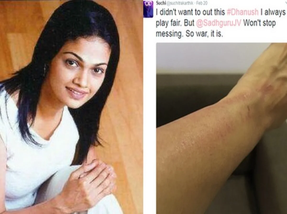 நடிகர் தனுஷ், சிம்பு, சுசித்ரா மற்றும் இன்னும் பலர் சேர்ந்து நள்ளிரவில் ஏதோ விளையாட்டு ஒன்றை விளையாடியுள்ளார்கள். அப்போதுதான், சுசித்ராவின் கையில் ஏதோ காயம் ஏற்பட்டுள்ளது. தனுஷ் அதை தடுக்காமல் வேடிக்கை பார்த்தார் என சுசித்ரா டிவிட்டரில் புலம்பியுள்ளார்.