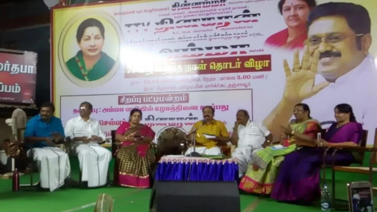 ஜெயலலிதாவின் 71 ஆவது பிறந்த நாளை முன்னிட்டு தஞ்சாவூரில் அமமுக சார்பில் சிறப்பு பட்டிமன்றம் நடைபெற்றது இதில் அமமுக கர்நாடக மாநில பொதுச்செயலாளர் புகழேந்தி, நடிகர் ரஞ்சித், சிஆர் சரஸ்வதி, மற்றும் கட்சி நிர்வாகிகள் ஆகியோர் கலந்து கொண்டதாக தகவல் தெரிவிக்கின்றன.