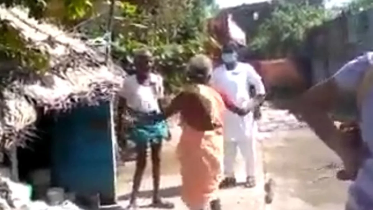 தமிழகம், புதுச்சேரி உள்ளிட்ட மாநிலங்களில் மருத்துவ பணியாளர்கள் வீடு வீடாக சென்று தடுப்பூசி குறித்து விழிப்புணர்வு ஏற்படுத்தி பலரையும் தடுப்பூசி செலுத்திக் கொள்ள செய்து வருகின்றனர். இந்நிலையில் புதுச்சேரி மேட்டுப்பாளையம் பகுதியில் வசித்து வரும் வயதான தம்பதிகளை செவிலியர்கள் தடுப்பூசி செலுத்திக் கொள்ள அழைத்துள்ளனர். அதற்கு அவர்கள் மறுத்துள்ளனர். மேலும் அந்த மூதாட்டி திடீரென சாமியாடத் தொடங்கியதுடன் அங்காளத்தம்மனுக்கு தடுப்பூசி ஆகாது என கூறியுள்ளார். பின்னர் செவிலியர்கள் அங்கிருந்து சென்றுள்ளனர். இந்த வீடியோ சமூக வலைதளங்களில் வைரலாகியுள்ளது.