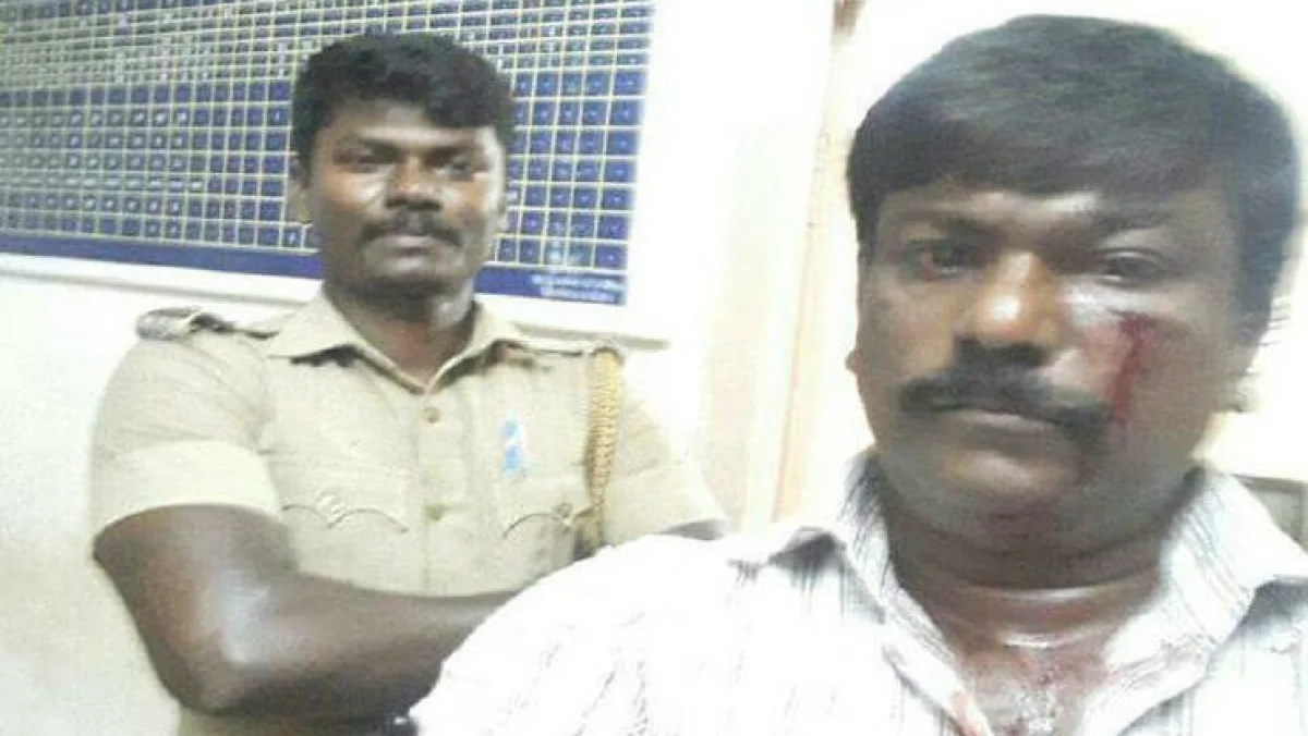 இதை பெரியசாமி தட்டிக் கேட்க, வாக்குவாதம் எழுந்துள்ளது. அப்போது அவரின் முகத்தில் சுந்தரம் தாக்கியுள்ளார். இதனால், அவர் முகத்தில் ரத்தம் வழிந்தது. அப்போது, அவரை செல்பி எடுக்க சொல்லி, அவருக்கு பின்னால் சிரித்த படியயே சுந்தரம் போஸ் கொடுத்துள்ளார்.