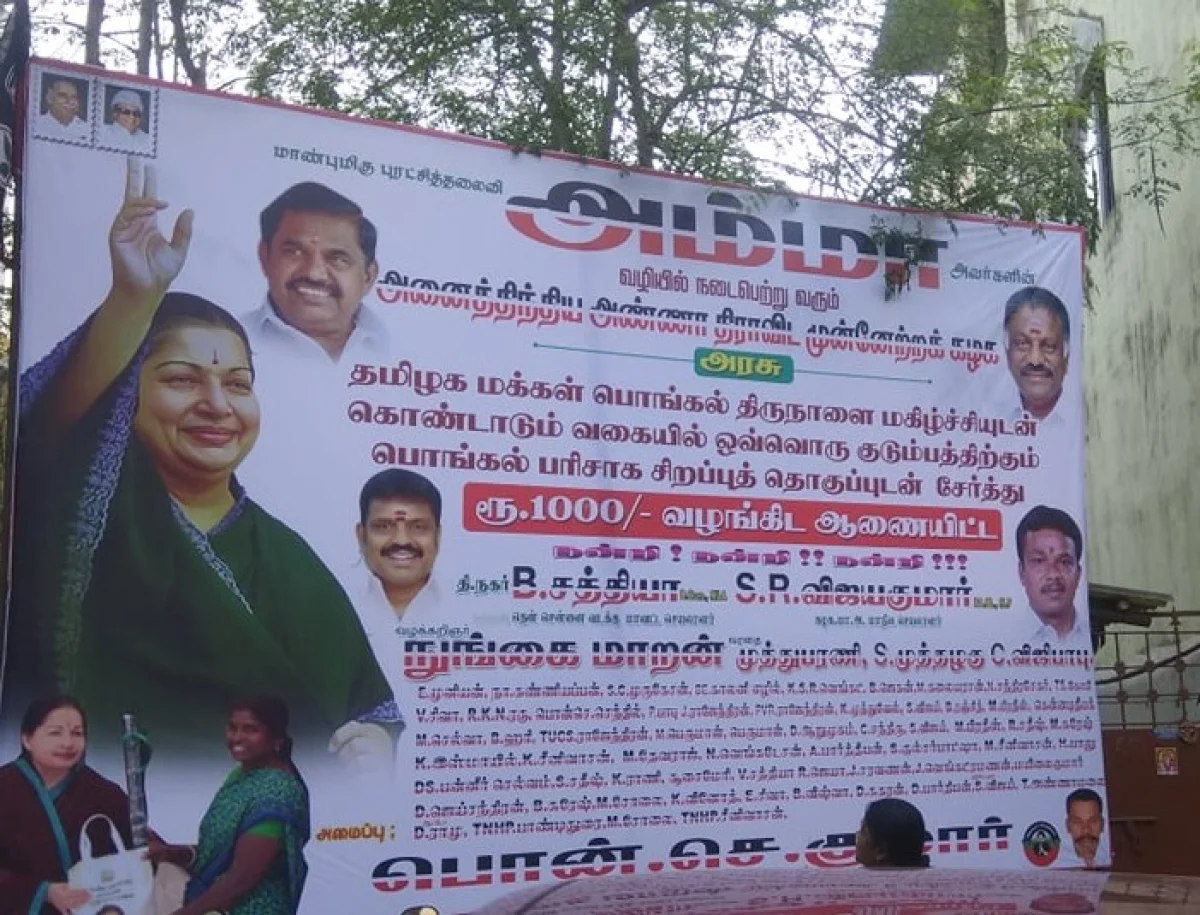 வழக்கமாகப் பொங்கல் பண்டிகையை முன்னிட்டு நியாய விலைக் கடைகளில் வெல்லம், ஏலக்காய், முதிரி திராட்சை, அரிசி போன்றவை வழங்கப்படும். ஆனால் இந்த ஆண்டு முதல் இலவசப் பொருட்களோடு பொங்கல் பரிசாக 1000 ரூபாய் பணமும் வழங்கப்படும் என அறிவிக்கப்பட்டது.