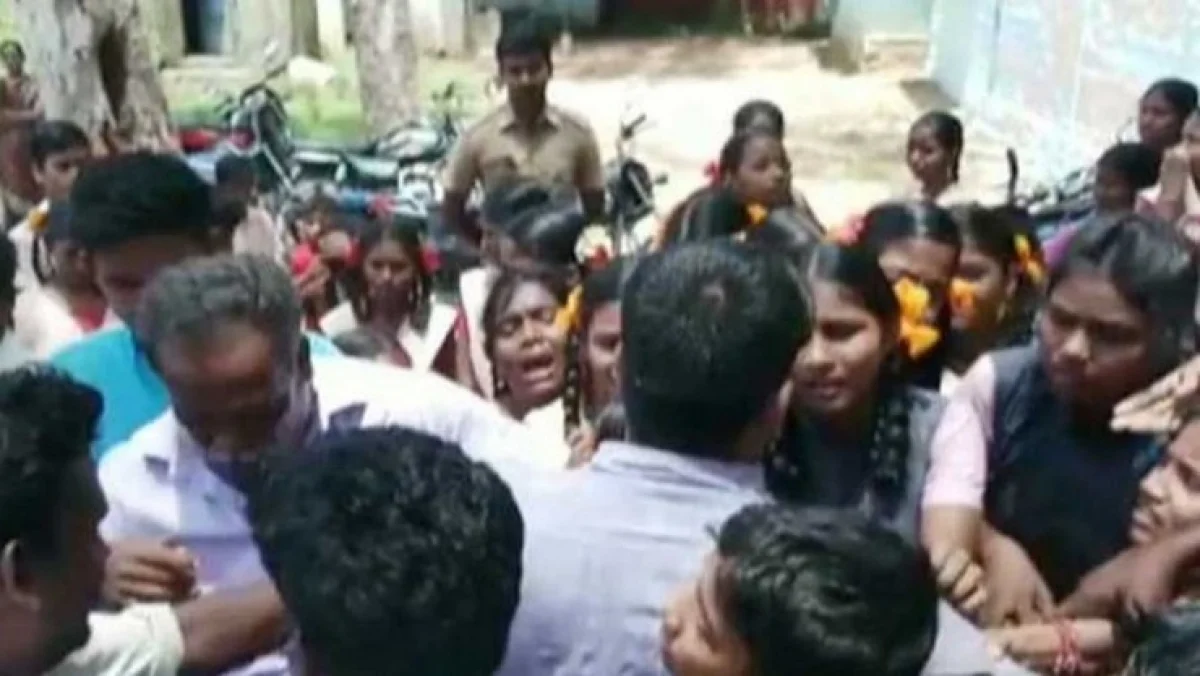 இதனால் அவரால் அங்கிருந்து செல்ல முடியவில்லை. மற்ற ஆசிரியர்கள் சமாதானம் செய்தும் அதை மாணவர்கள் ஏற்கவில்லை. அதன்பின் வேறு வழியில்லாமல் போலீசார் வரவழைக்கப்பட்டு மாணவர்களை சமாதனம் செய்து ஆசிரியை வெளியே அழைத்து சென்றனர்.