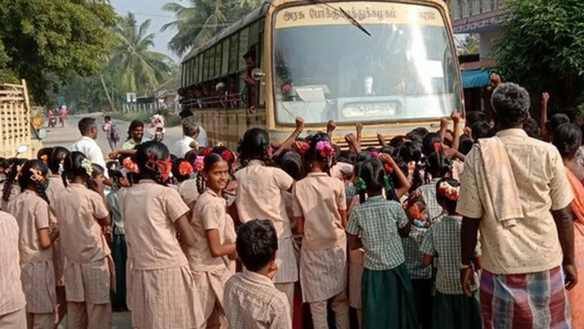 கள்ளக்குறிச்சி மாவட்டம் சூளாங்குறிச்சி அரசு நடுநிலைப் பள்ளியில் ஒருவர் அறிவியல் ஆசிரியராக பணிபுரிந்து வந்துள்ளார். மாணவர்களின் நன்மதிப்பை பெற்ற அவருக்கு சமீபத்தில் பணியிட மாறுதல் உத்தரவு வந்துள்ளது. இந்நிலையில் அவரை பணியிட மாற்றம் செய்யக்கூடாது என போராட்டத்தில் ஈடுபட்ட மாணவர்கள் அவ்வழியாக வந்த அரசு பேருந்தை மறித்து போராட்டம் செய்துள்ளனர். ஆசிரியருக்காக மாணவர்கள் நடத்திய இந்த போராட்டம் வைரலாகியுள்ளது.
