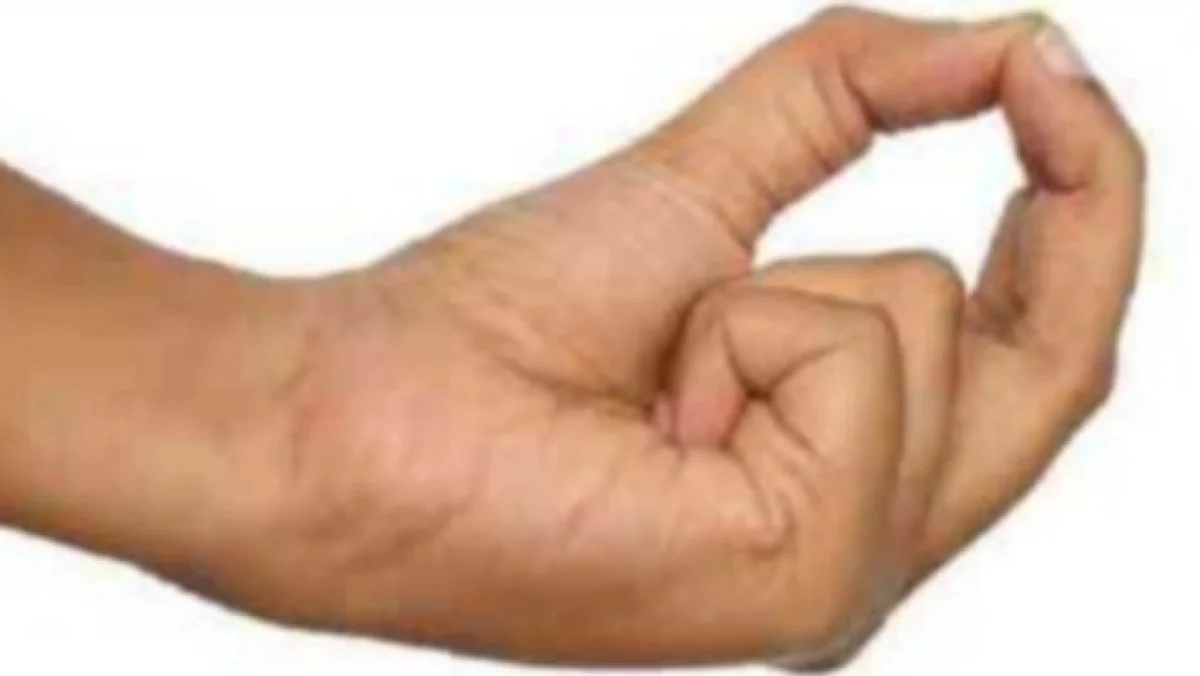 பெருவிரல் சுக்கிரனையும், ஆள் காட்டி விரல் குருவையும், நடு விரல் சனியையும் குறிக்கும். இந்த மூன்று விரலையும் சேர்த்து பிடிப்பதால் சனி, குரு, சுக்கிரன் சேர்க்கை ஏற்படுகிறது. இந்த கிரக சேர்க்கை பொருளாதார வசதிகளை பெருக்கும் கிரக சேர்க்கையாகும்.