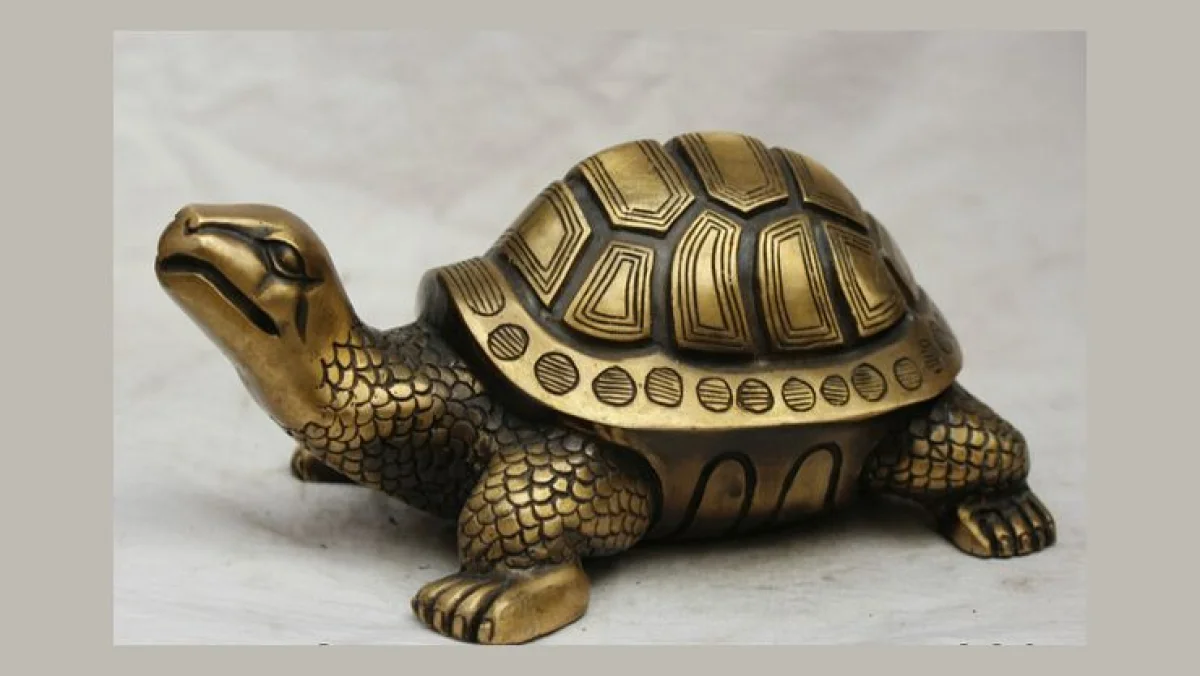 சீன வாஸ்து எனும் ஃபெங்க்சுயி முறையில் ஆமை எப்படித் தன் ஐந்து உறுப்புகளையும் (தலை மற்றும் கால்கள்) உள்ளடக்கிக்கொண்டு எதிரிகளிடமிருந்து தற்காத்துக் கொள்கிறது. வாஸ்து சாஸ்திரப்படி நீண்ட ஆயுளையும், விருப்பங்கள் உடனடியாக நிறைவேறுவதையும் ஆமை குறிக்கிறது.