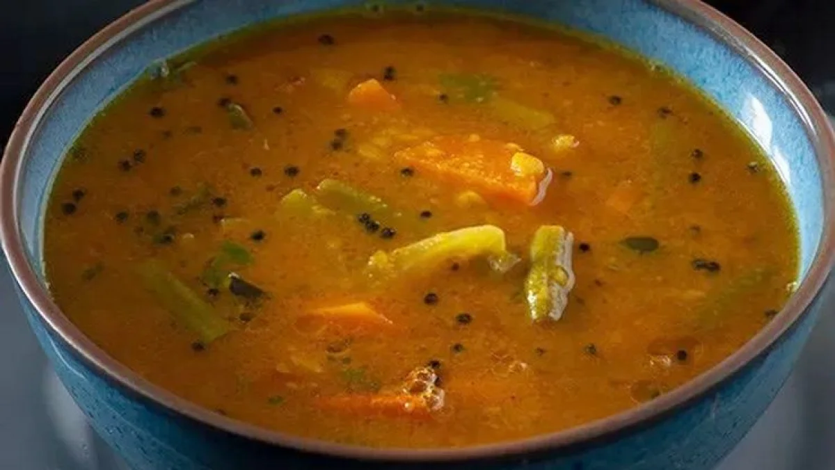 பின் பச்சை மிளகாய் மற்றும் தக்காளி சேர்த்து நன்கு சுருள வதக்கவும். பின்னர் 1 1/2 கப் தண்ணிர் சேர்த்து மிளகுத் தூள், சீரகத் தூள், மஞ்சள் தூள், வெந்தயத் தூள் சேர்த்து பச்சை வாசனை போகும் வரை கொதிக்க விடவும். கடைசியாக வெந்த பருப்பை போட வேண்டும் .கொதித்து 2 நிமிடம் ஆனதும் மல்லித்தழையைப் போட்டு இறக்கி விடவும்.