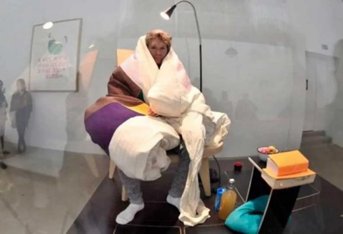 அடைக்கப்பட்ட கண்ணாடிப் பெட்டகத்துக்குள், வெப்ப நிலையை அதிகரிக்கும் உணவுகளை மட்டுமே உட்கொண்டு அதன் உள்ளேயே உறங்கியுள்ளார்.