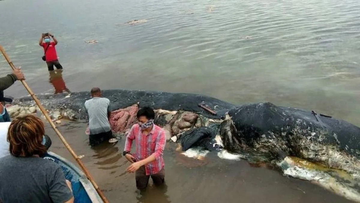 இந்நிலையில் இறந்துபோன திமிங்கலத்தின் வயிற்றுப் பகுதியில் இருந்து கிலோ கணக்கில் பிளாஸ்டிக் பொருட்கள், மற்றும் நெகிழி சாக்குகள் போன்றவை எடுக்கப்பட்டுள்ளதாக செய்திகள் வெளியானது.