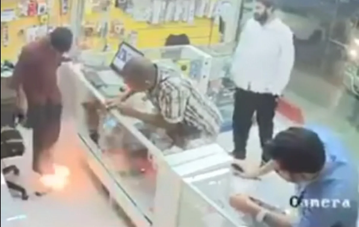 கடைக்காரர் வாடிக்கையாளரின் ஸ்மார்ட்போனை பழுபார்க்க வாங்குகிறார். சிம் கார்ட் ஒன்றை போனில் பொருந்த முயற்சிக்கும் போது செல்போன் தீப்பிடித்து எரிய தொடங்கியது.