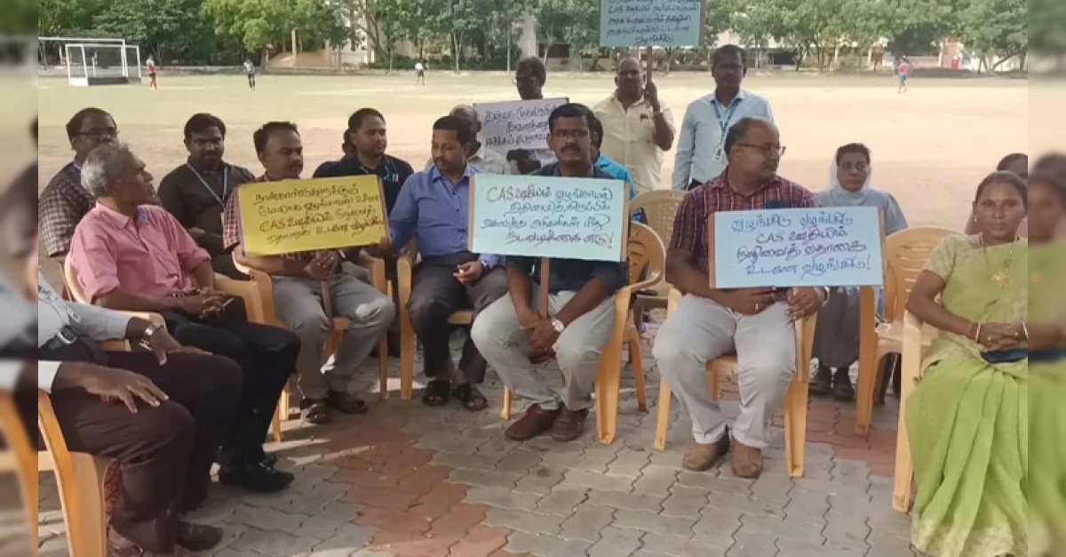 இன்று முதல் தமிழ்நாடு முழுவதும் உள்ள அரசு உதவி பெறும் தனியார் கல்லூரி பேராசிரியர்கள் கவன ஈர்ப்பு காத்திருப்பு போராட்டத்தில் ஈடுபட்டு வருகின்றனர்.