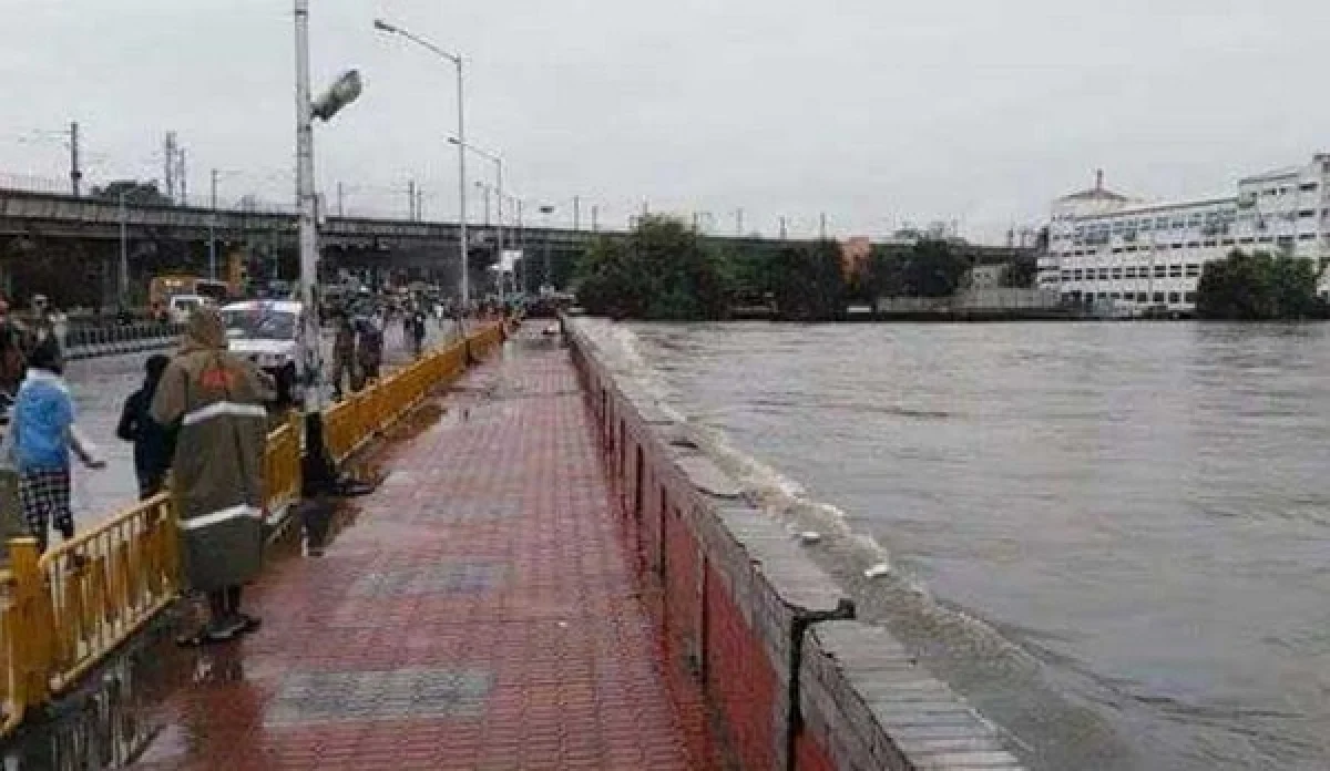 சென்னையில், பெய்து வரும் கனமழை காரணமாக அடையாறு ஆற்றில் கரைபுரண்டு ஓடும் வெள்ளத்தால் சைதாப்பேட்டை பாலம் மூழ்கியது.