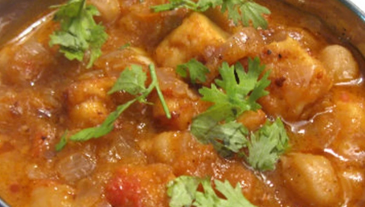 சென்னாவை வேக வைத்து எடுக்கவும். பன்னீரை சிறிது வெண்ணெய் விட்டு வறுத்து எடுக்கவும். அதே பாத்திரத்தில் இன்னும் சிறிது வெண்ணெய் விட்டு பிரியாணி இலை, சீரகம் சேர்த்து தாளிக்கவும். தாளித்து பொடியாக நறுக்கிய வெங்காயம், இஞ்சி, பூண்டு சேர்த்து வதக்கவும். இதில் நறுக்கிய பச்சை மிளகாய், தக்காளி, கொத்தமல்லி தழை சேர்த்து வதக்கவும். மசாலா வகைகள் மற்றும் உப்பு சேர்த்து வதக்கவும்.